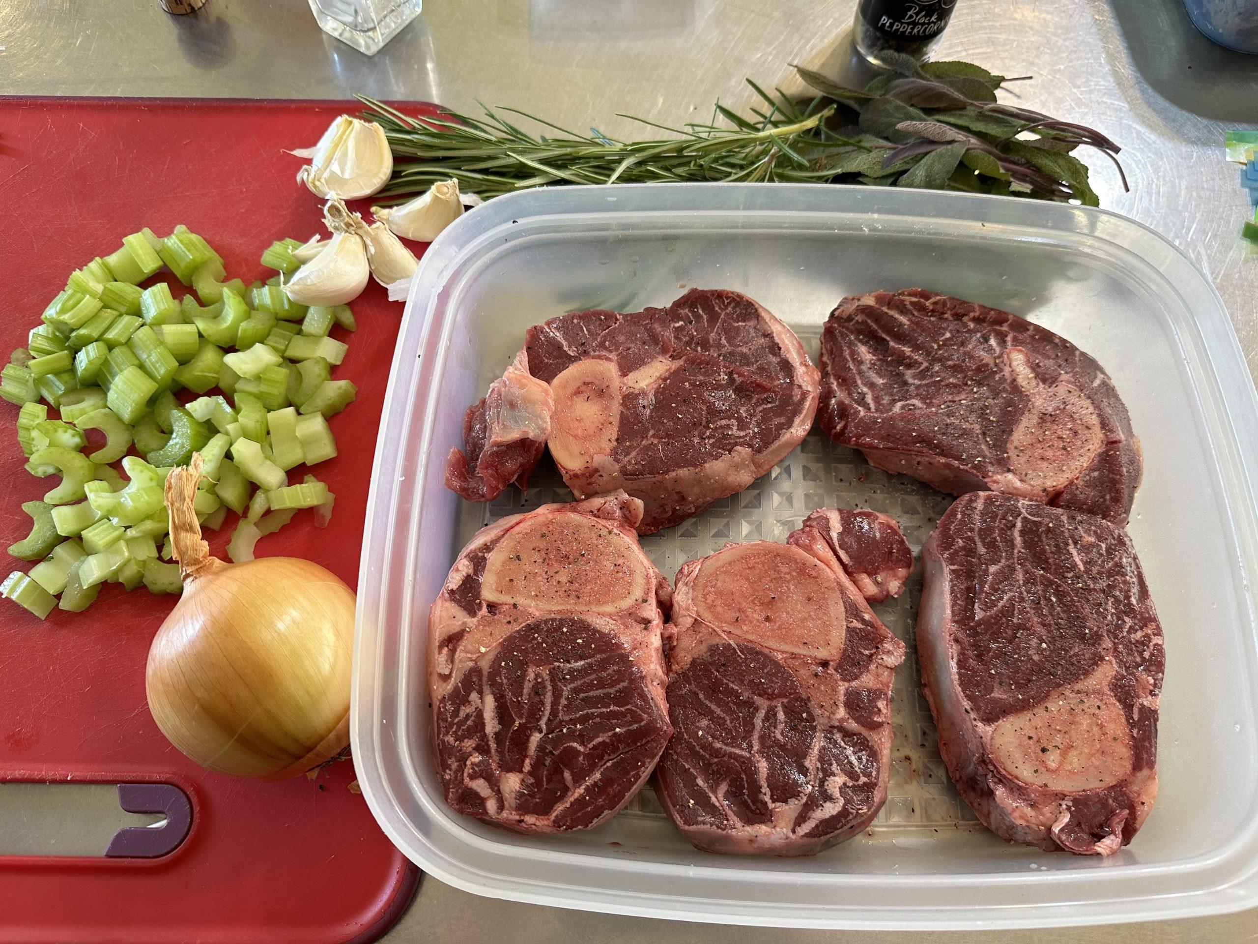 Beef shin or shanks are the key ingredient in the traditional Italian slow-cooked dish Osso Bucco. Beef shins are highly nutritious, especially the marrow in the bone.